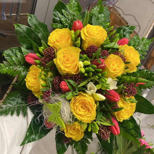 Entdecken Sie unsere kunstvoll gebundenen Blumensträuße, die Farbenpracht und Frische vereinen. Jeder Strauß erzählt eine Geschichte, sei es für Geburtstage, Jubiläen oder als liebevolles Geschenk. Unsere Floristen wählen sorgfältig die schönsten Blumen aus, um Sträuße zu kreieren, die Herzen erobern. Verleihen Sie jedem Anlass mit unseren Blumensträußen einen besonderen Zauber.